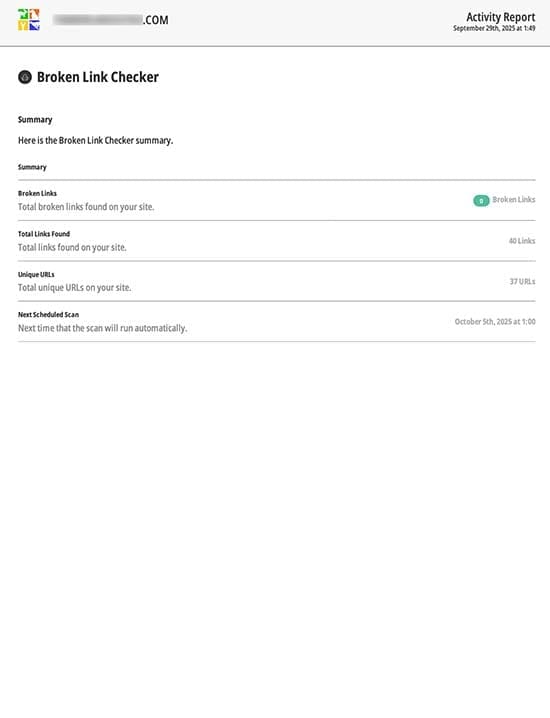 • Broken Links – Total broken links found on your site.