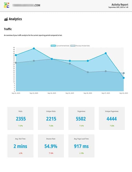 An overview of your traffic analytics for the current reporting period compared to the previous reporting period.
